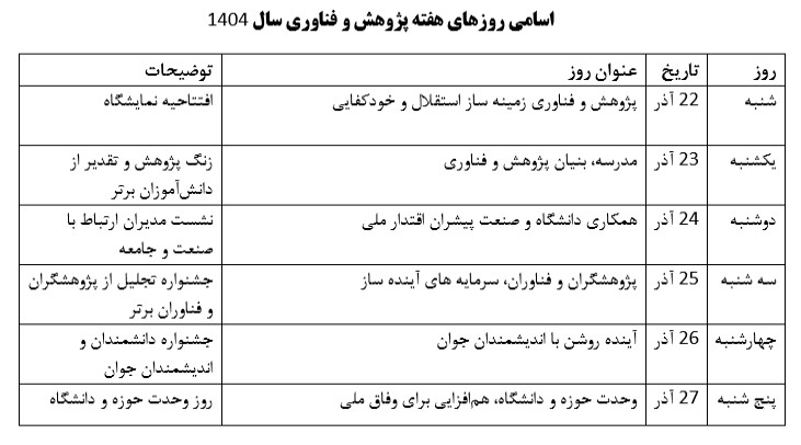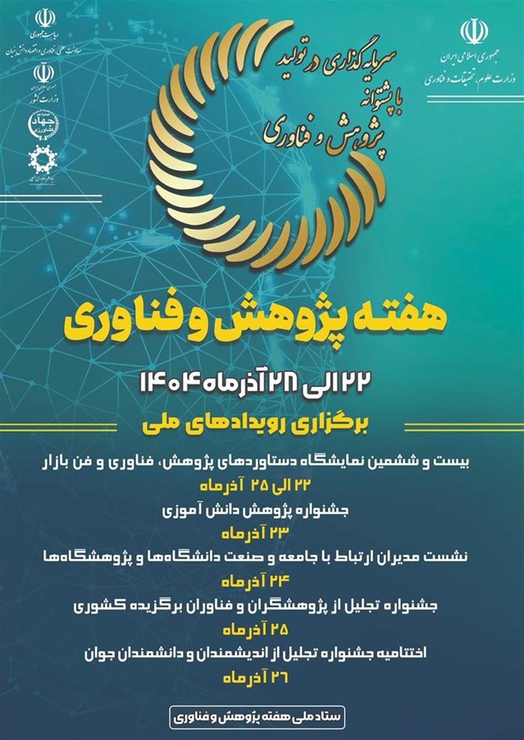 شعار هفته پژوهش و فناوری سال 1404: " سرمایه گذاری در تولید با پشتوانه پژوهش و فناوری "