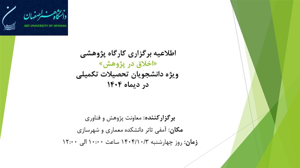 اطلاعیه برگزاری کارگاه پژوهشی «اخلاق در پژوهش» در دیماه 1404 ویژه دانشجویان تحصیلات تکمیلی